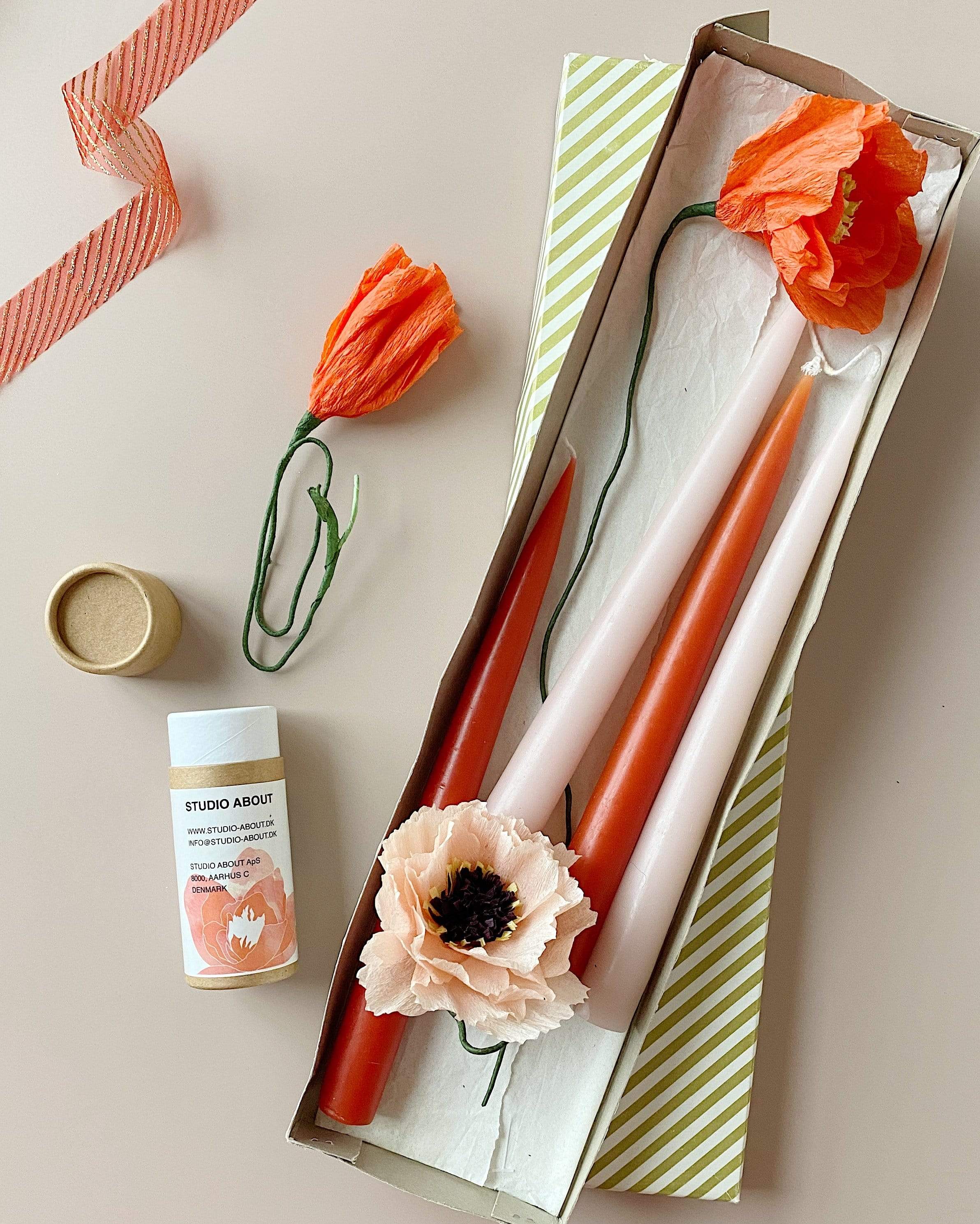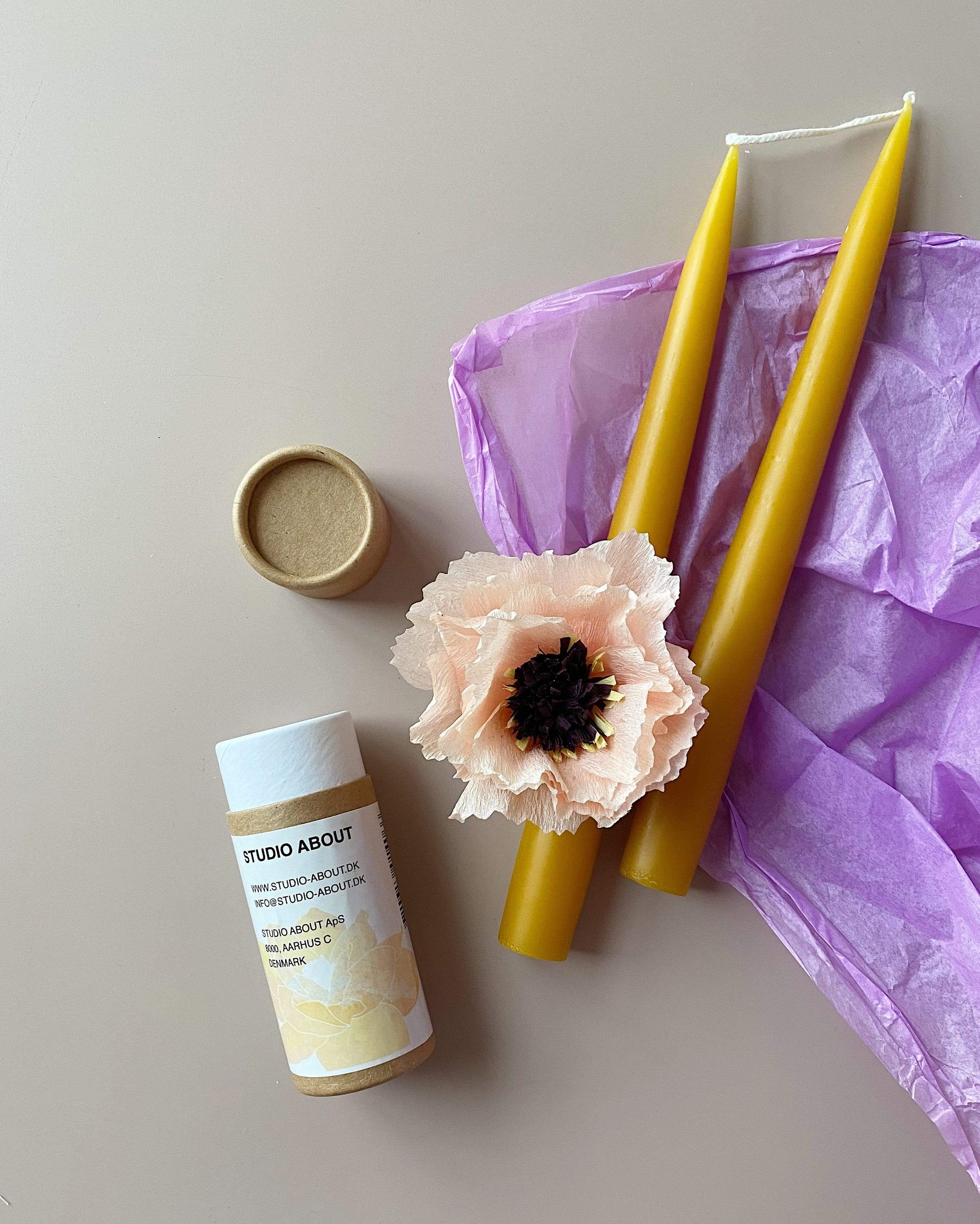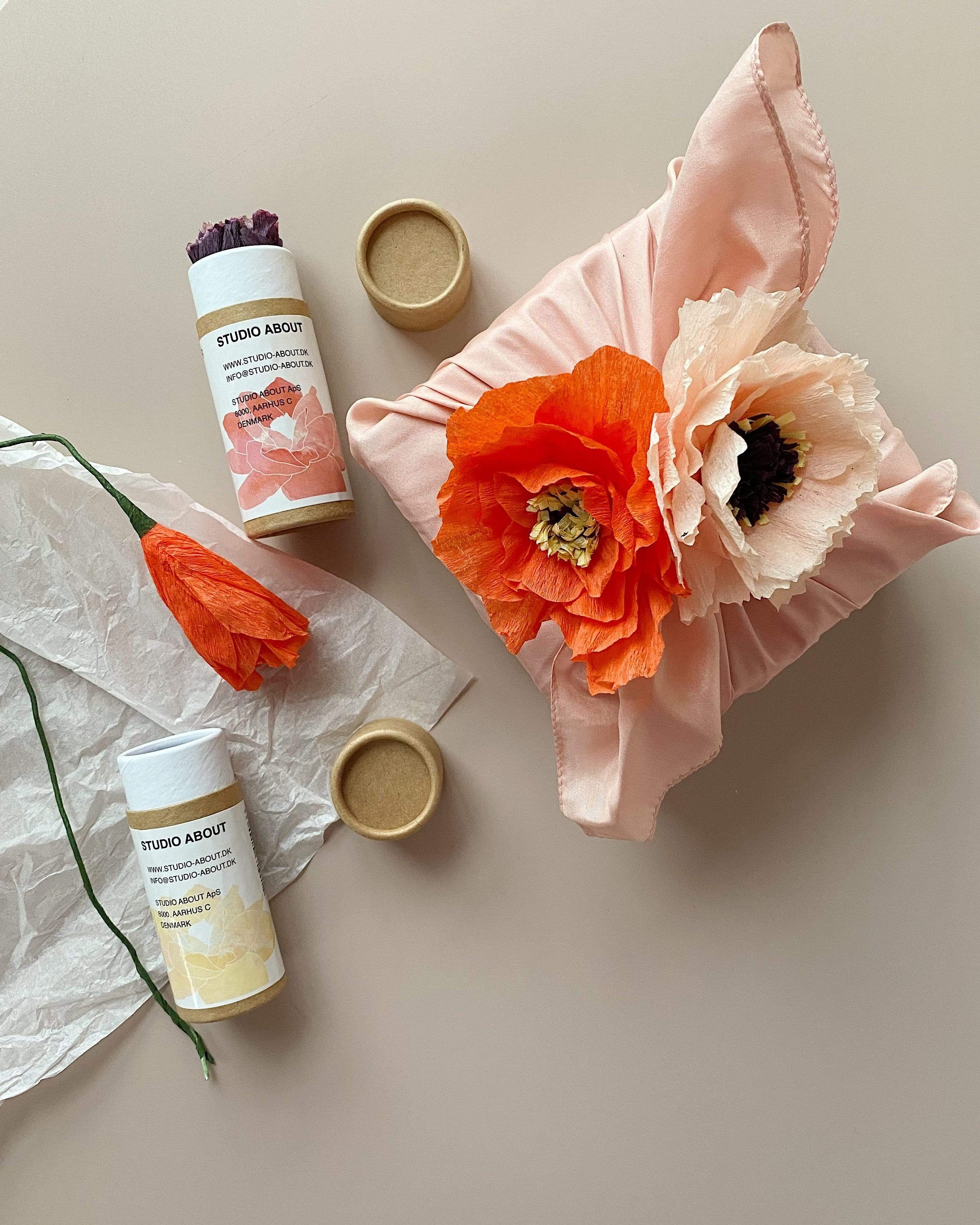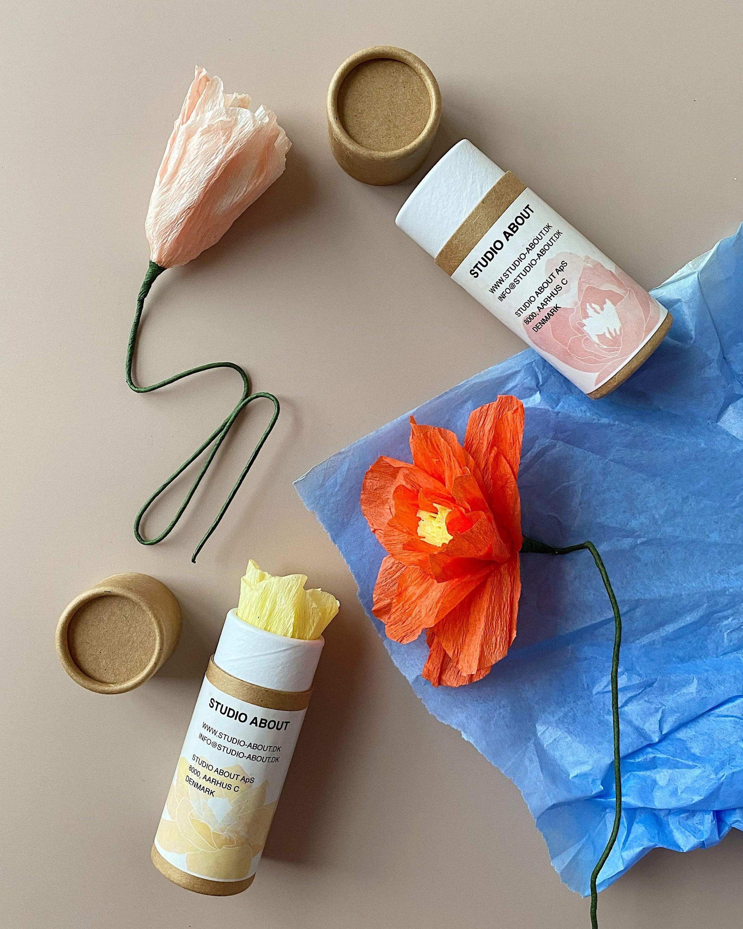 Die Papierblume wird in einer kleinen Papprolle geliefert. Somit ist perfekt als Mitbringsel und Geschenk für deine Liebsten.