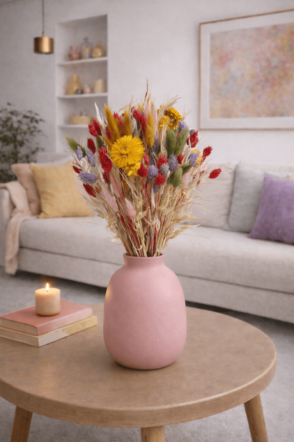 Unsere Vision ist Blumendekoration nachhaltiger zu gestalten und anzuregen bereits gekaufte getrocknete Blumen für kreative DIYs, Kränze, Mini-Sträuße oder Geschenke wiederzuverwenden.