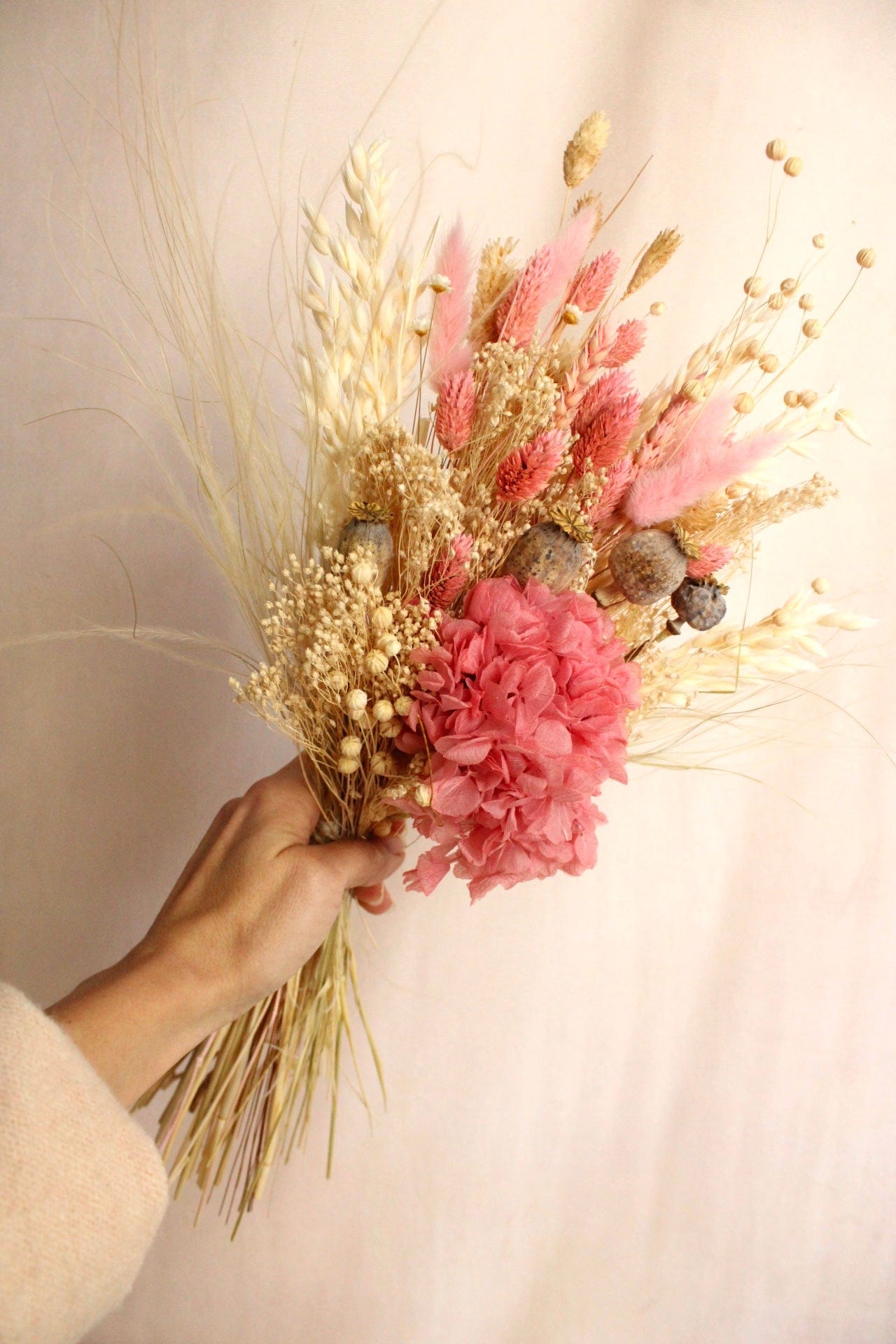 Trockenblumenstrauss „No. 89“ in Rosa & Cremeweiß mit Hortensie