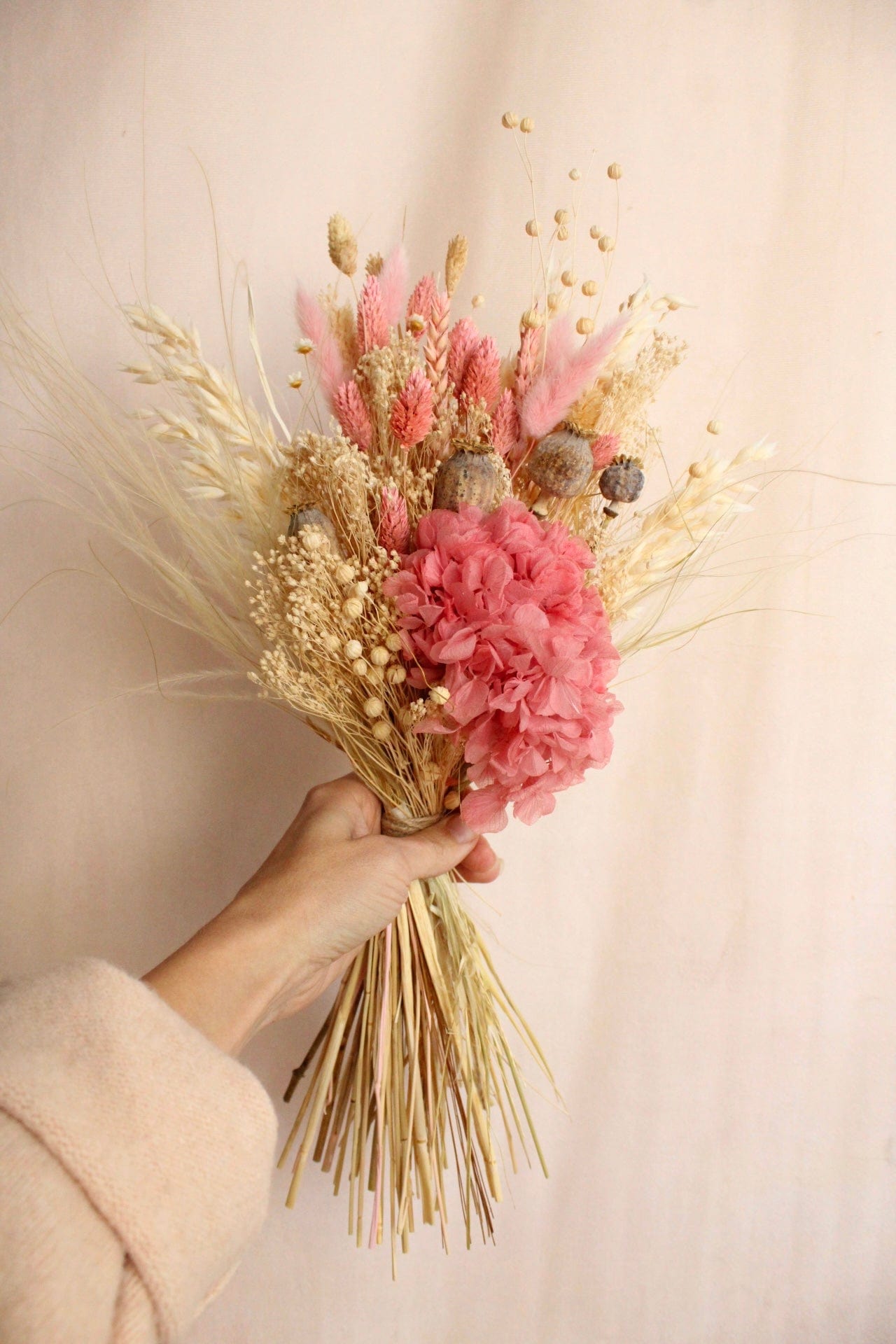 Ein langanhaltender Trockenstrauß perfekt als Geschenk zum Geburtstag, Jahrestag oder Hochzeitstag. Mit Liebe von unseren Floristinnen handgebunden mit Lagurus, Hortensie und Phalaris in Rosa, Cremeweiß und Natur.