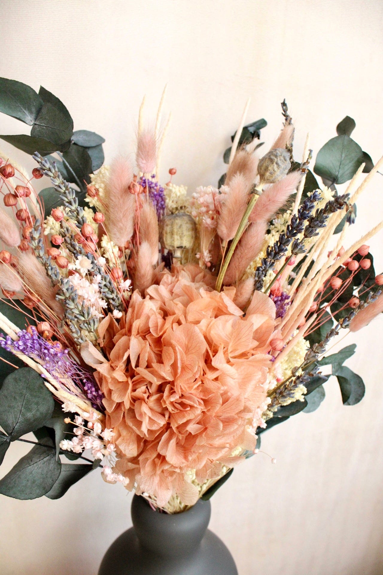 Trockenblumenstrauss „No. 90“ in Rosa & Apricot mit Hortensie & Eukalyptus
