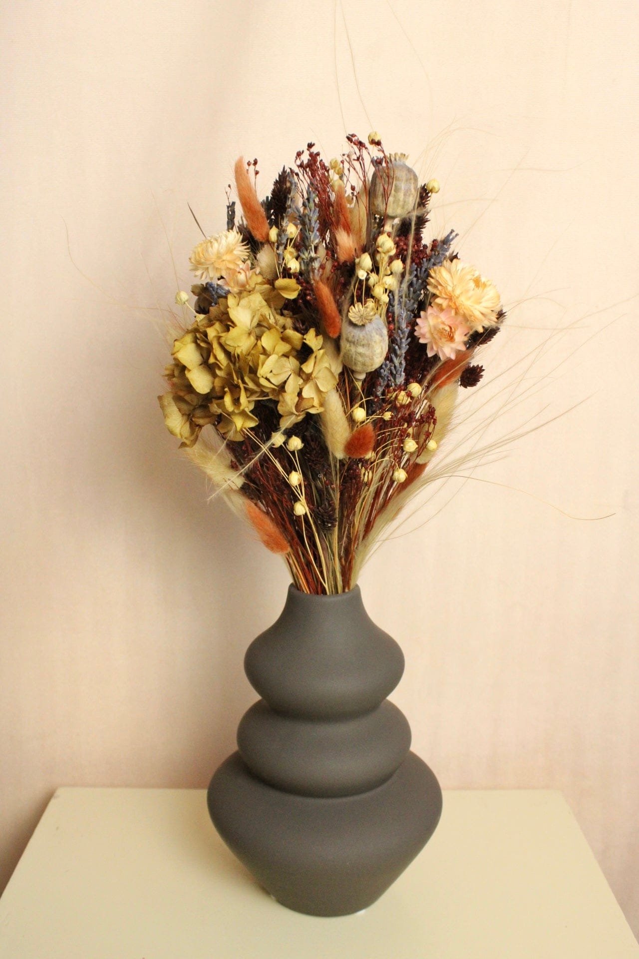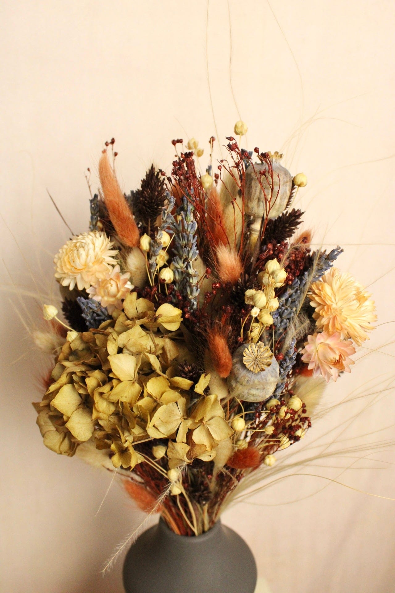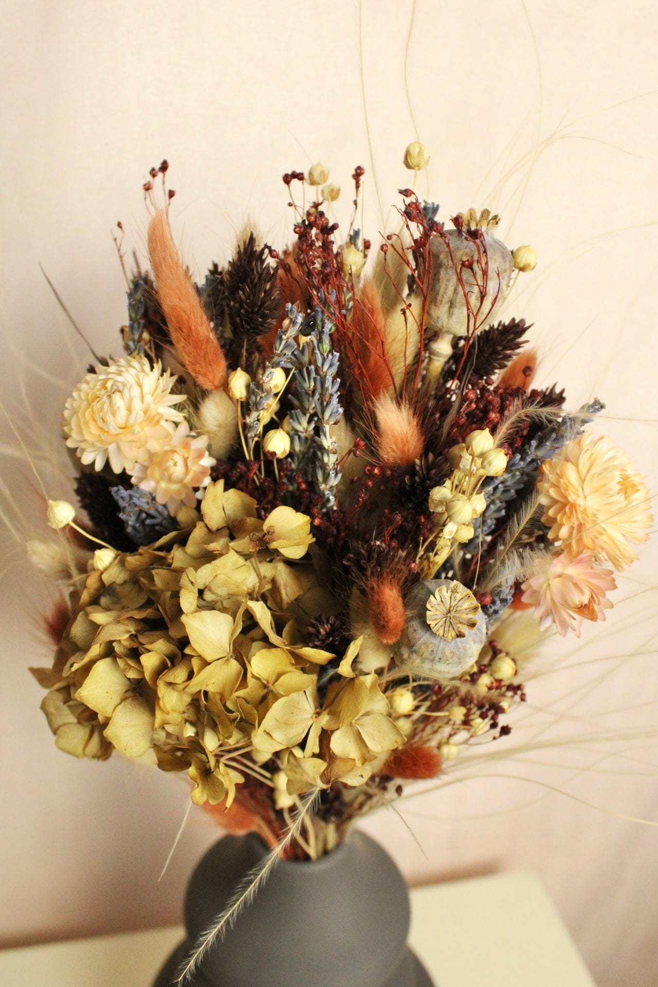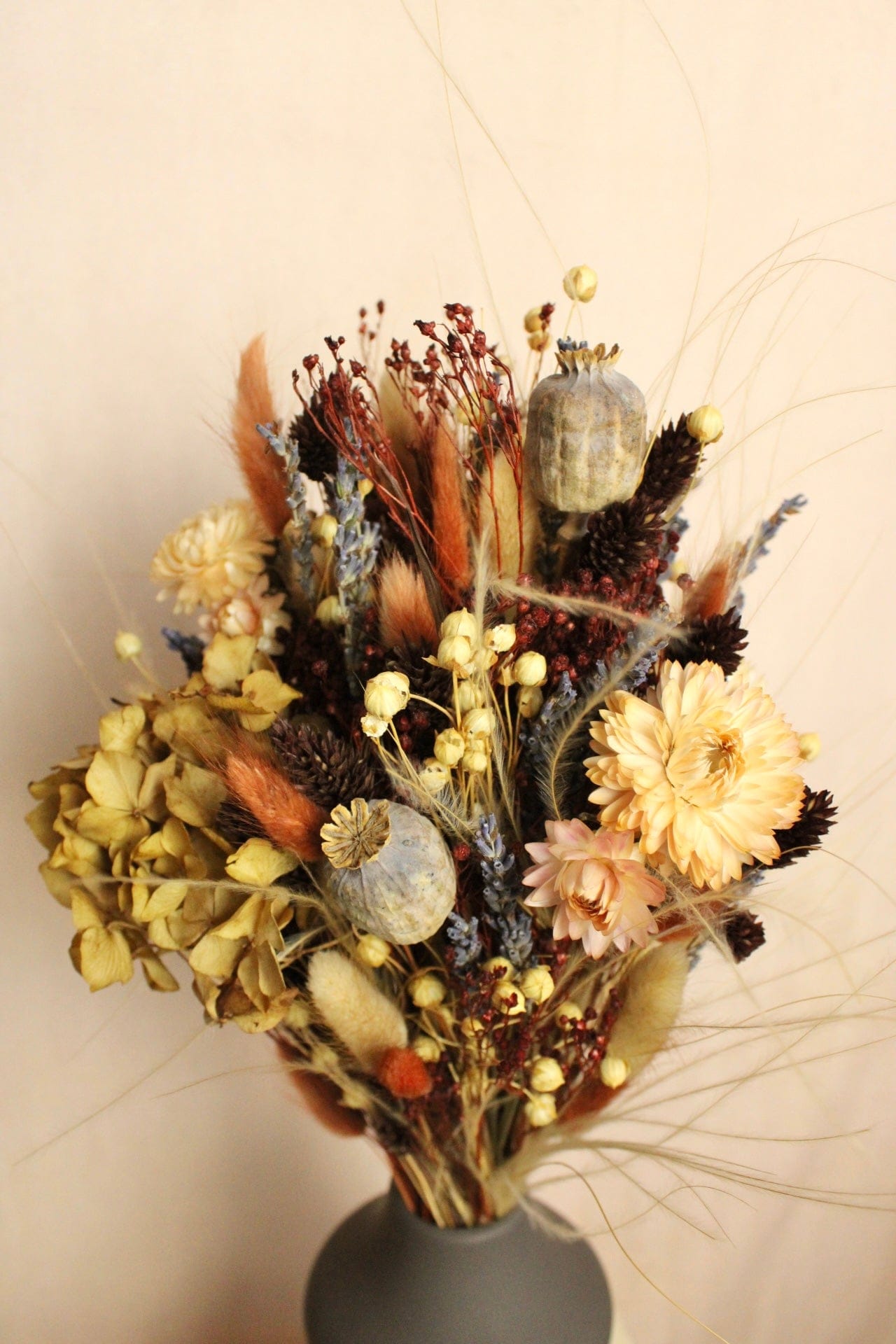 Trockenblumenstrauss „No. 115“ in Braun & Creme mit Mohn & Hortensien