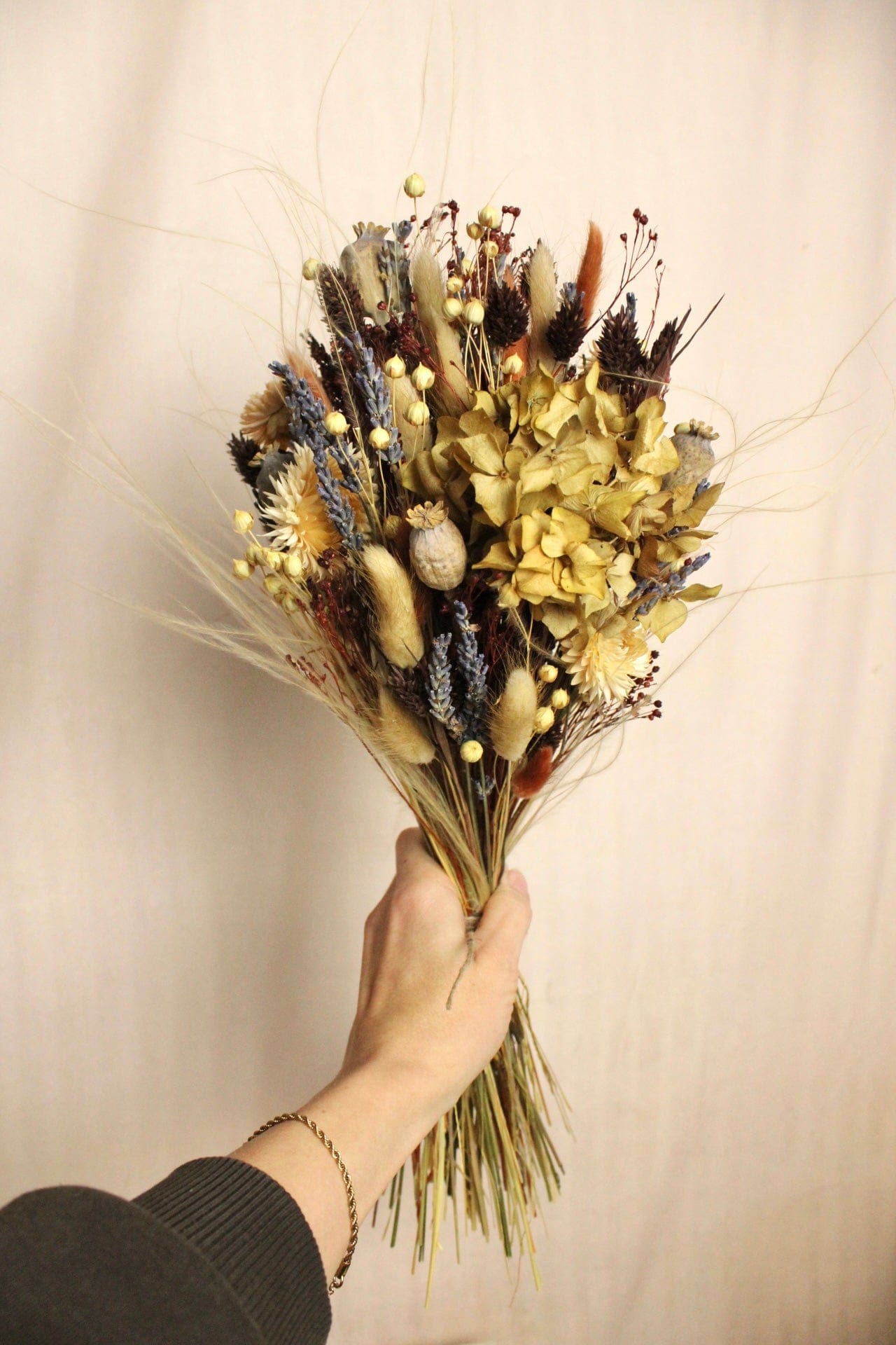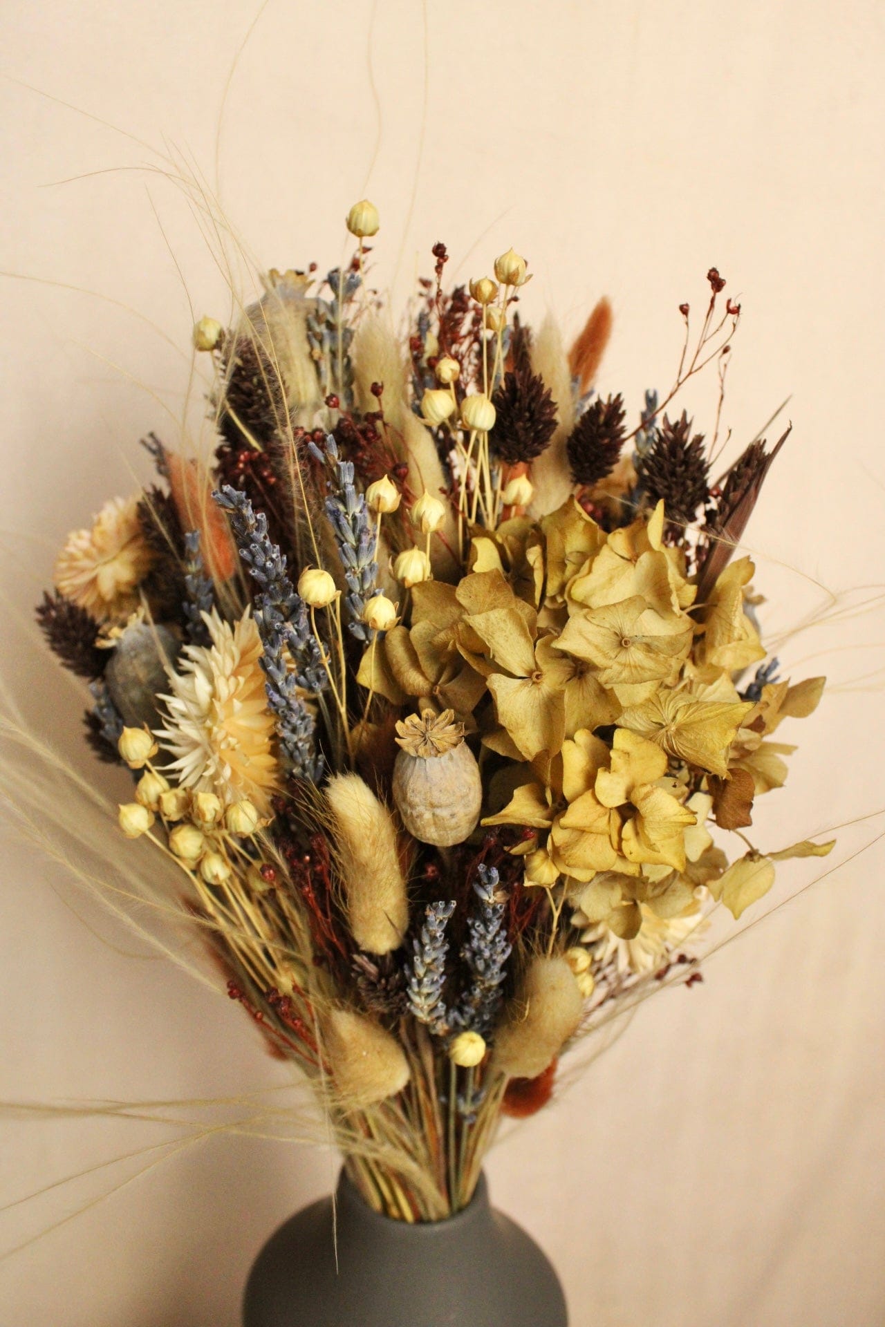 Ein langanhaltender Trockenstrauß perfekt als Geschenk zum Geburtstag, Jahrestag oder Hochzeitstag. Mit Liebe von unseren Floristinnen handgebunden mit Lavendel, Mohnkapseln und Hortensien in Blau, Braun, Natur und Cremeweiß.