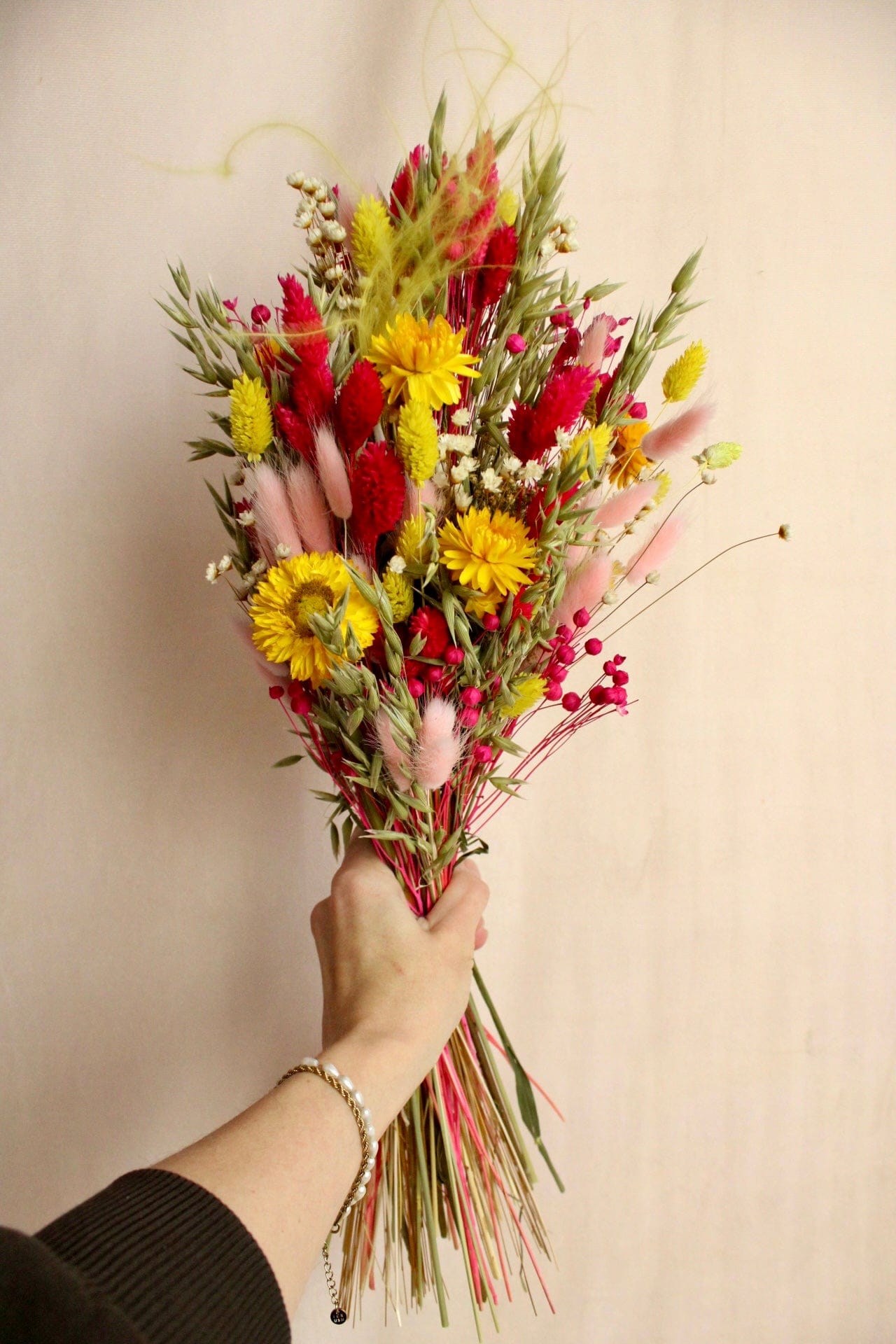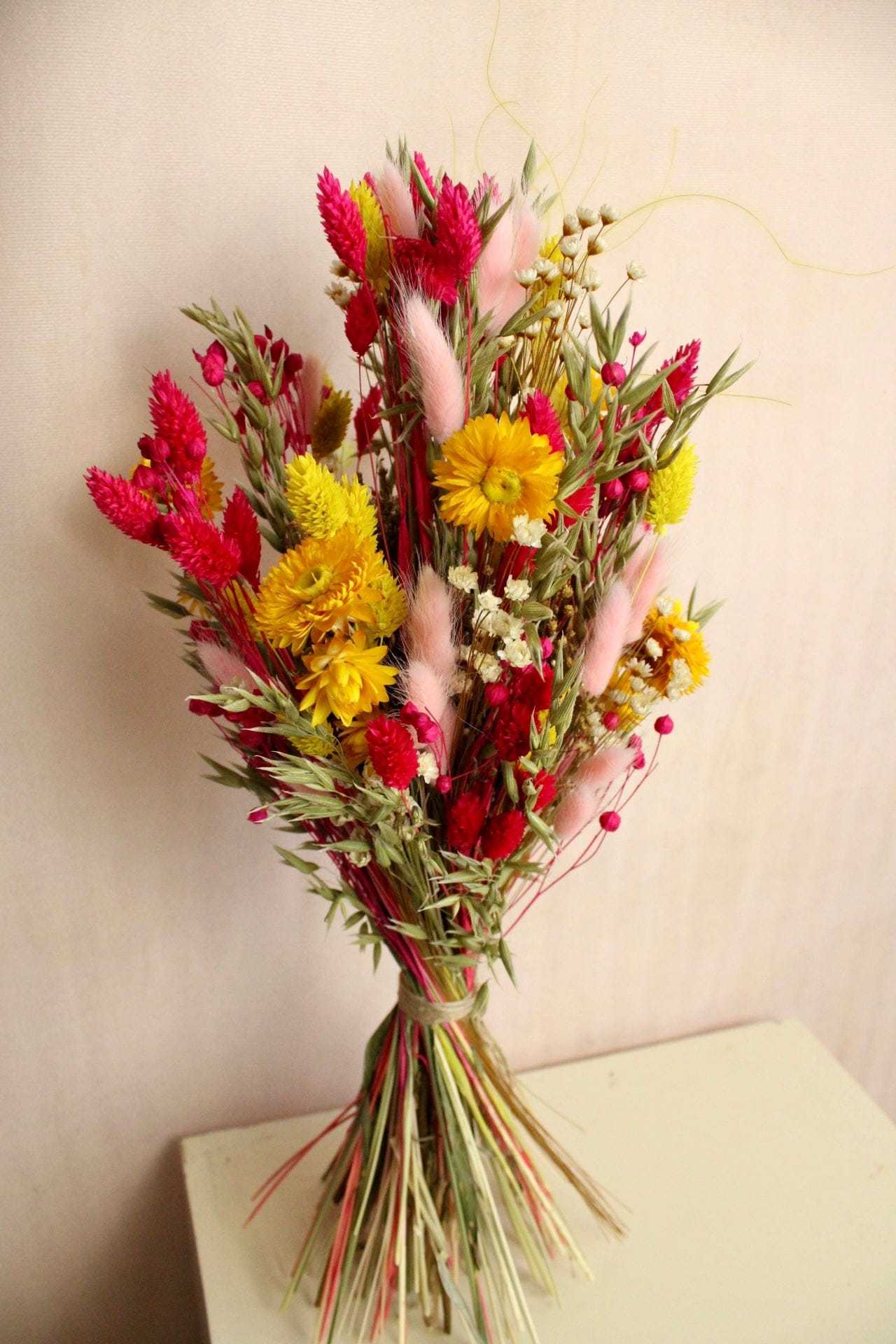Trockenblumenstrauss „No. 124“ in Pink & Gelb mit Strohblumen
