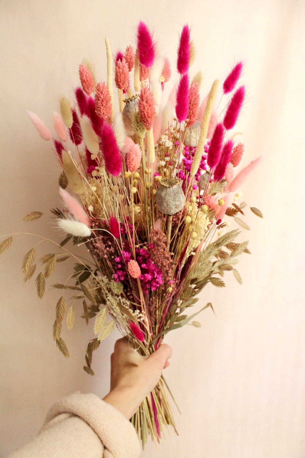 Ein langanhaltender Trockenstrauß perfekt als Geschenk zum Geburtstag, Jahrestag oder Hochzeitstag. Mit Liebe von unseren Floristinnen handgebunden mit Glixia, Lagurus und vielen weiteren Trockenblumen in Rosa, Pink und Cremeweiß.