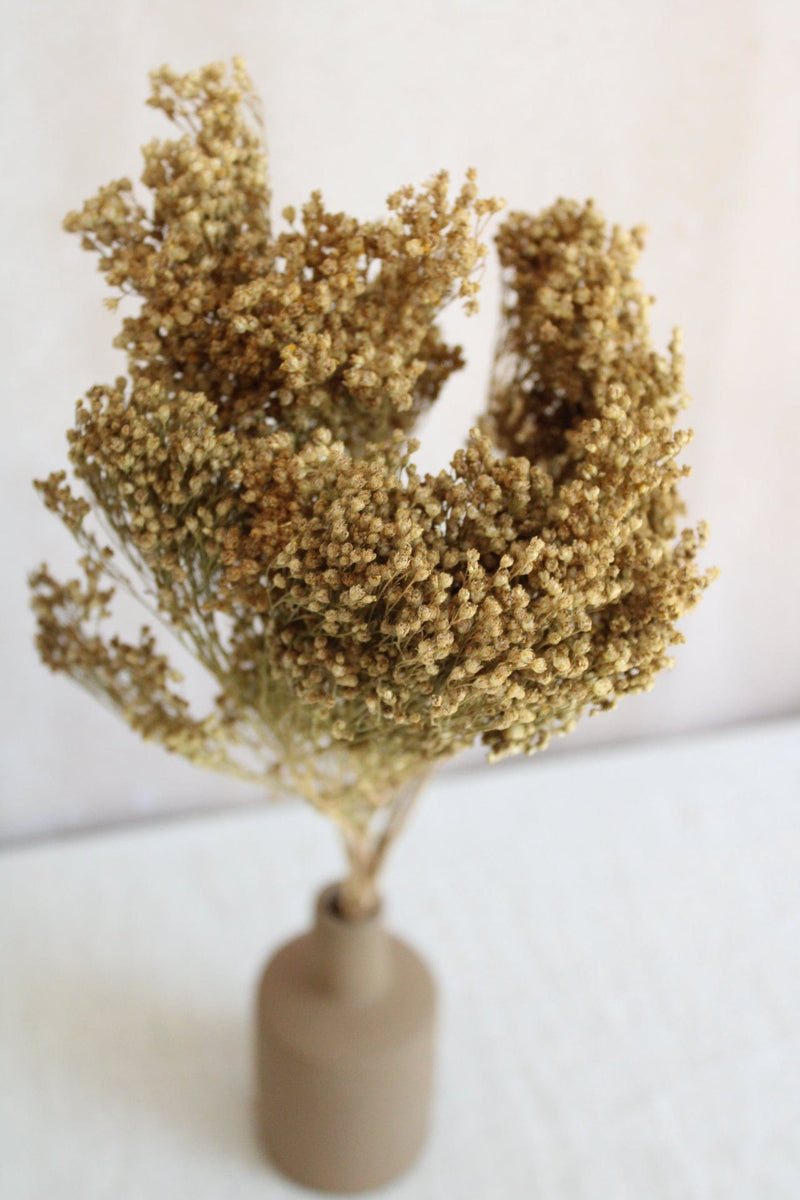 Getrockneter Broom Bloom ist eine perfekte Ergänzung in Trockenblumensträußen und lässt sich super in deinen DIY-Projekten weiterverarbeiten, bspw. beim Flower Hoop. Zu dem gelbfarbenen Broom Bloom lassen sich andere Trockenblumen in Naturfarben oder in Weiß perfekt kombinieren.
